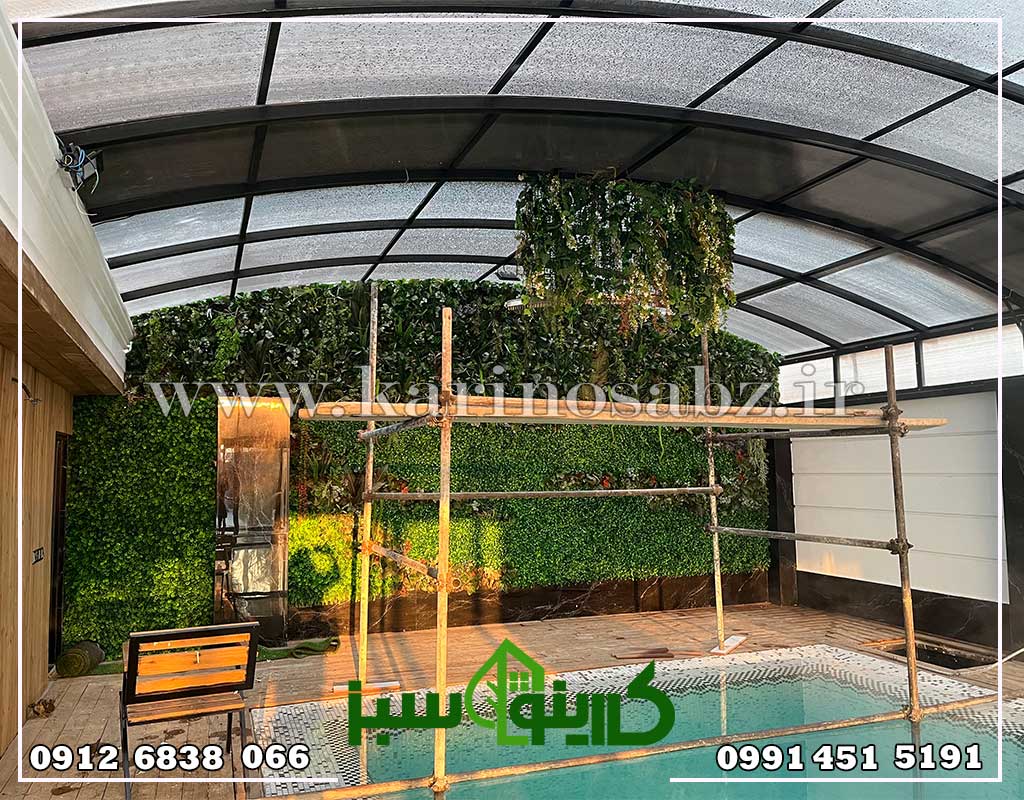 در این پروژه طراحان ما با استفاده از ترکیب پنل گیاهان مصنوعی و گیاهان مصنوعی شاخه ای در فضای اطراف استخر فضایی با نشاط و آرامشبخش را بوجود آوردند. با اجرای دیوار سبز مصنوعی ترکیبی زیبایی طبیعی و جنگلی برای فضای مورد نظر ایجاد شد.