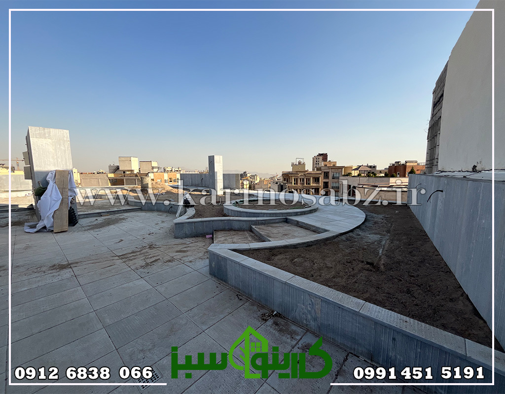 اجرای فضای سبز روف گاردن پروژه اندرزگو / تابستان 1404